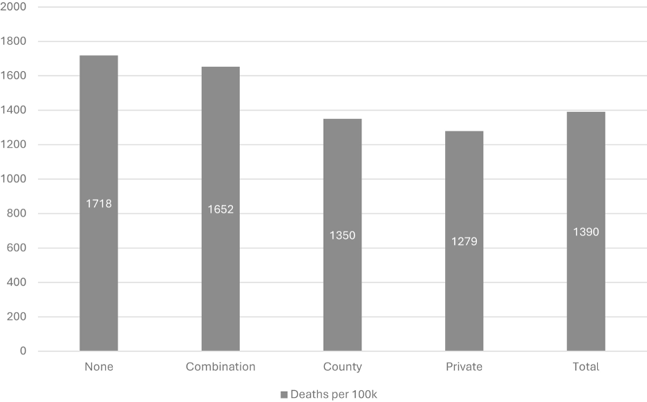 Through a national FOIA-based survey, researchers compiled mortality and correctional health care provider data from county jails. The data indicate a lower average detainee death rate in facilities with privately-run correctional health care contracts compared to county-managed systems. While causation cannot be assumed solely from correlation, the contrast in outcomes challenges the prevailing claim that public systems outperform private models. The study noted: